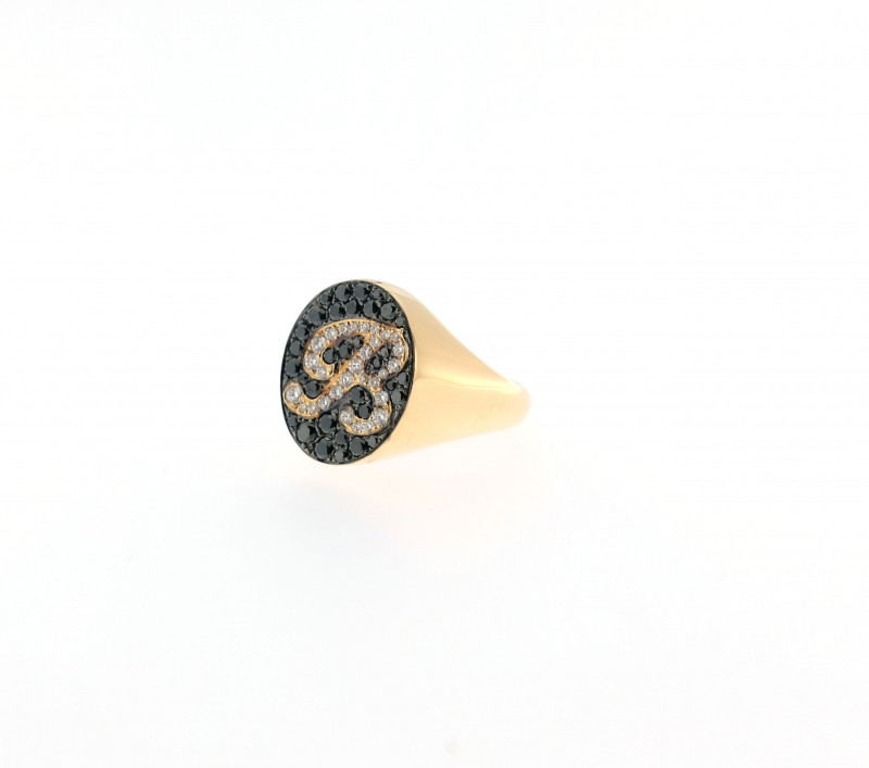 Anello Crivelli ovale diamanti neri 0,45 ct con iniziale diamanti bianchi 0,16 ct. Questo anello realizzato in oro rosa 750°%, si fa notare per il suo contrasto di colori dei diamanti, nero e bianco, da sempre combinazione di un’eleganza forte. Ricorda al mondo chi sei oppure porta sempre con te l’iniziale della persona che ami.