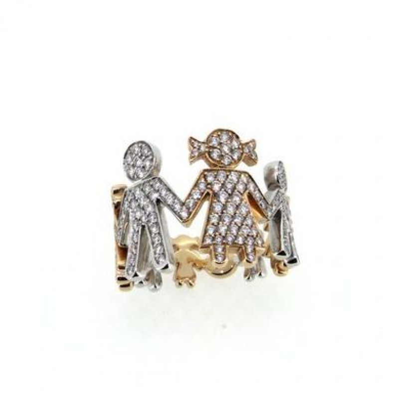 Anello formato da soggetti "bimbi e bimbe" (altezza cm1,1) in oro bianco e rosè 18kt con diamanti taglio brillante di ct.1,22 complessivi.