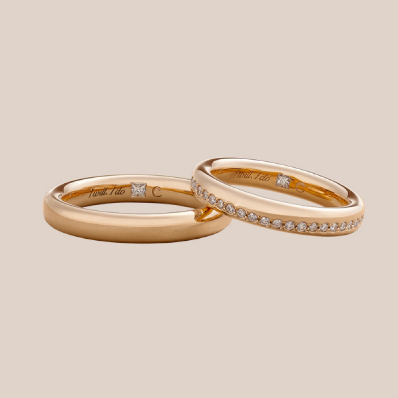 Fedi Nuziali I will I do Slim in oro rosa e diamanti bianchi di Crivelli Gioielli.