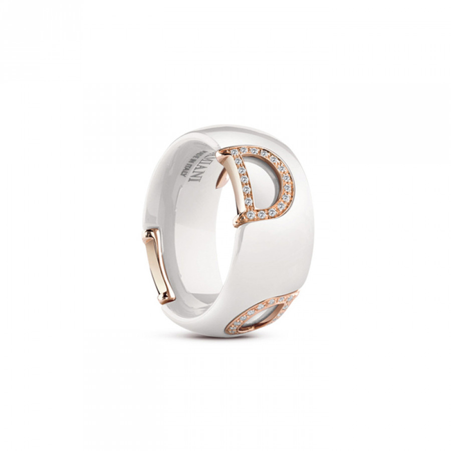Anello D.ICON in ceramica bianca, oro rosa e diamanti