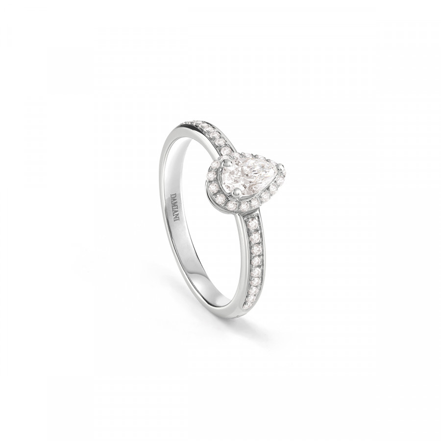 Qui troviamo il solitario Damiani Minou in oro bianco con diamante taglio goccia ct. 0.47 Gh