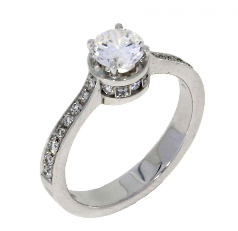 Anello in oro bianco, diamante centrale 0,3 ct. e diamanti 0,57 ct. G VS2