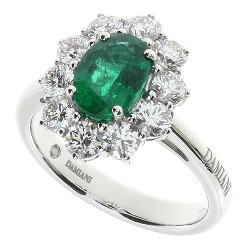Anello Damiani in oro bianco con diamanti e smeraldo, della collezione Gemme