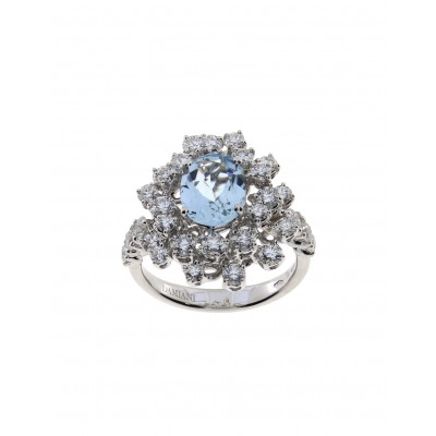 Anello Mimosa in oro bianco con acquamarina e brillanti