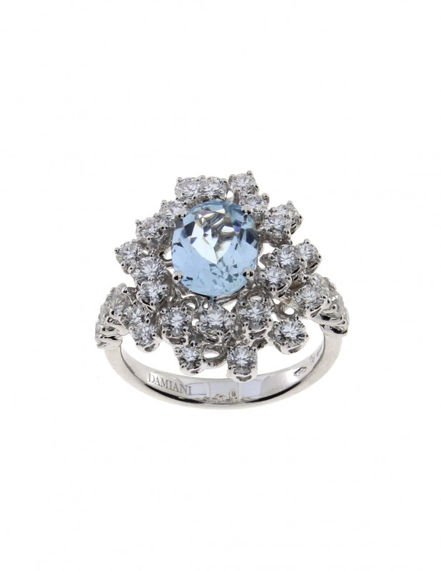Anello in oro bianco con acquamarina e brillanti appartenente alla collezione Mimosa di Damiani