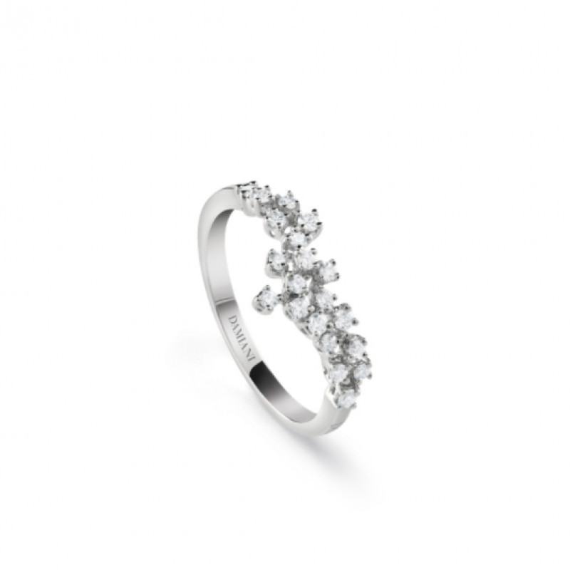 Anello in oro bianco e diamanti appartenente alla collezione Mimosa di Damiani