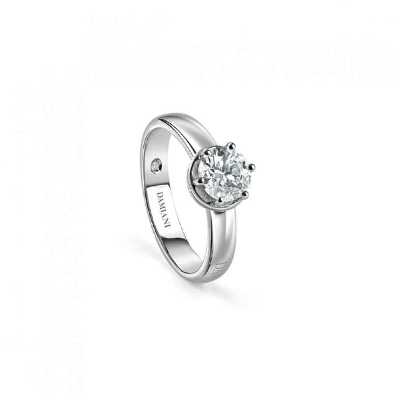 Anello solitario Damiani collezione Minou in oro bianco 28kt e diamante ct. 0,70 G VS2