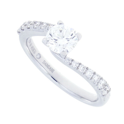Anello solitario Damiani in oro bianco e full pavè diamanti 0,75 ct. F VS2 della collezione Promessa.