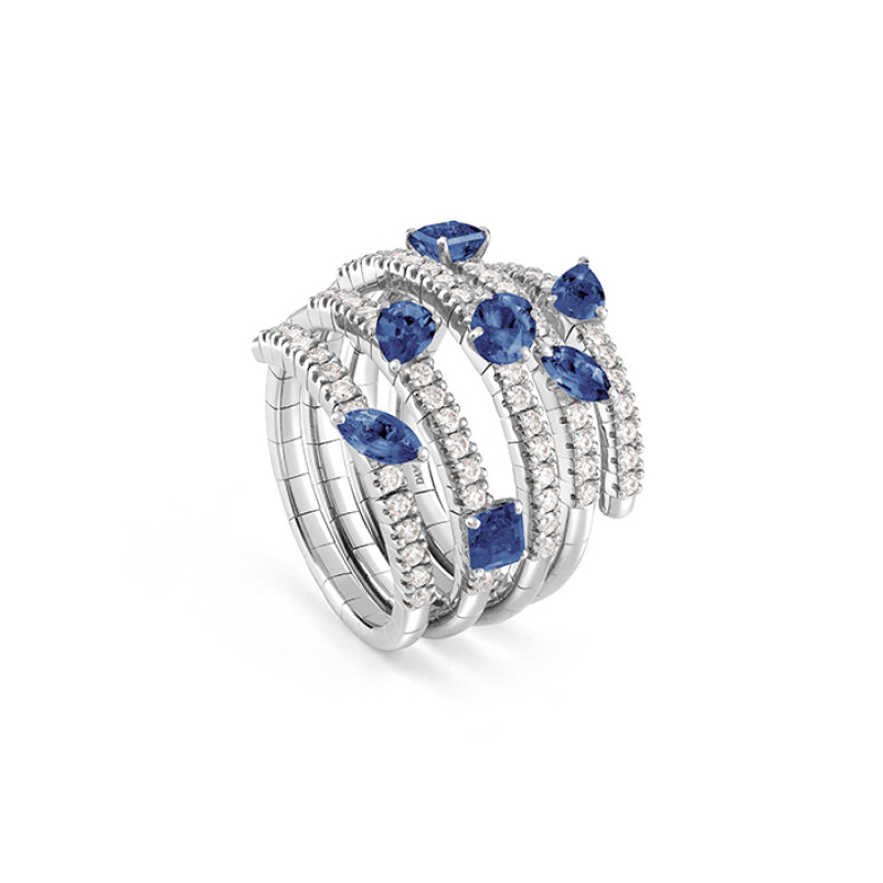 Anello Damiani in oro bianco con diamanti e zaffiri della collezione Notte di San Lorenzo