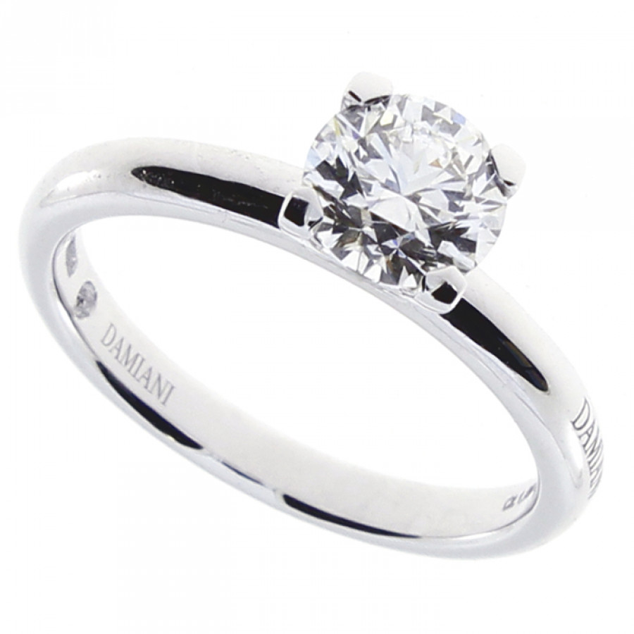 Anello solitario Damiani Veramore in oro bianco 18k con diamante centrale.