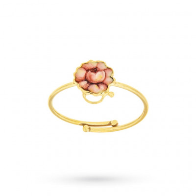 L'anello rosa smaltata gambo aperto in oro miniato fa parte della collezione Fiori di Gabriella Rivalta.