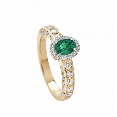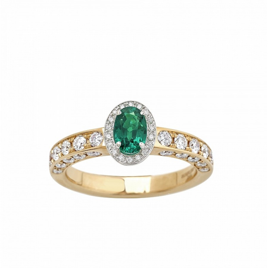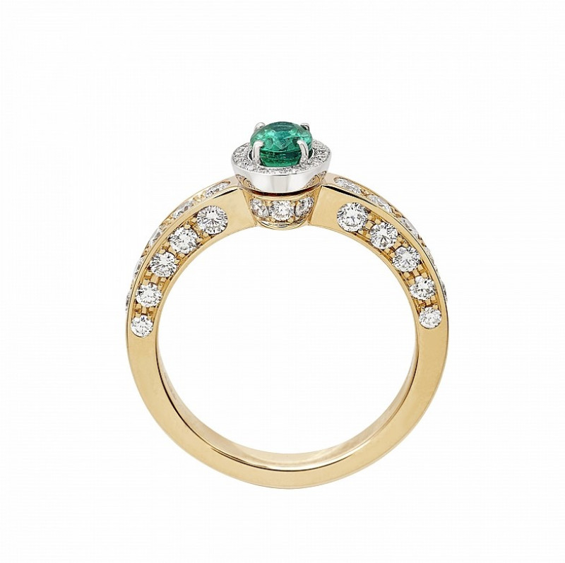 Giorgio Visconti anello solitario in oro bianco, rosa e smeraldo centrale taglio ovale con contorno e gambo di brillanti incassati a pavé.