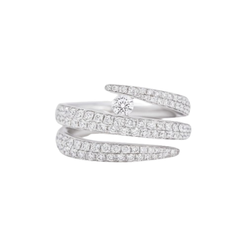 Anello Giorgio Visconti tre file in oro bianco e diamanti 1,15 ct. G VS con diamante centrale 0,18 ct. G VS, linea Like Me.