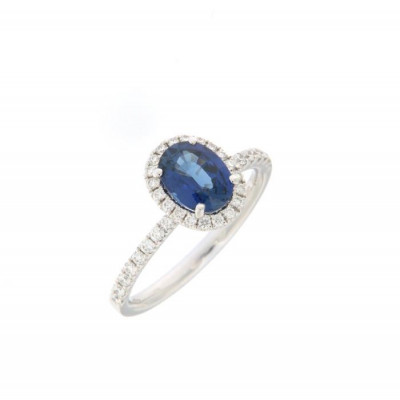 Anello in oro bianco con zaffiro e diamanti