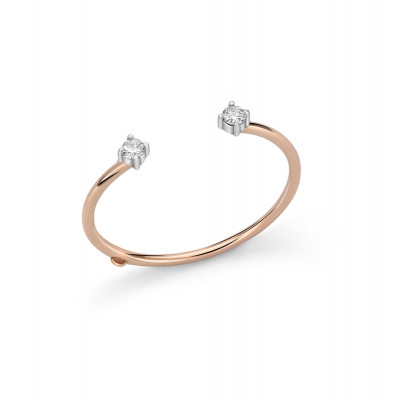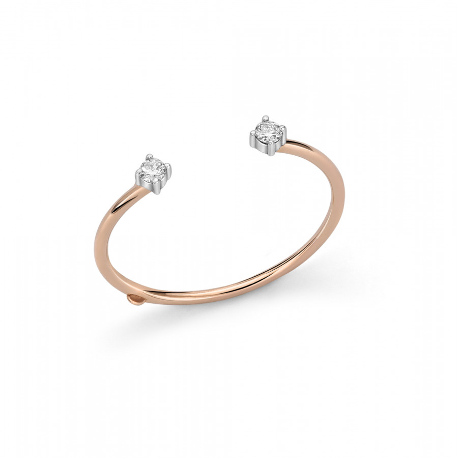 Anello contrarié con castoni e diamanti bianchi ct. 0,06. Disponibile solo in oro rosa 18K.