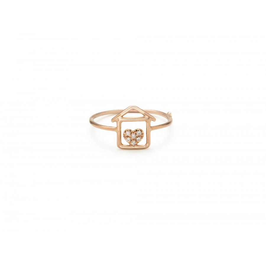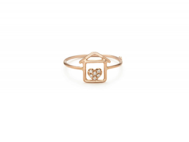 Anello Marco Gerbella in oro rosa con casa a filo e diamanti della collezione Piccole Gioie.