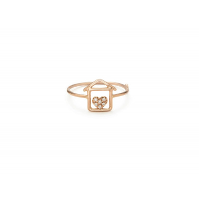 Anello in oro rosa 18 kt con casa a filo e 6 diamanti ct. 0,03.