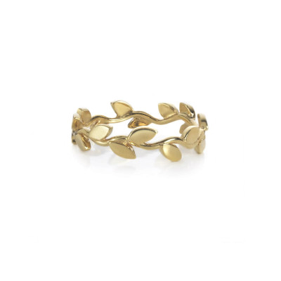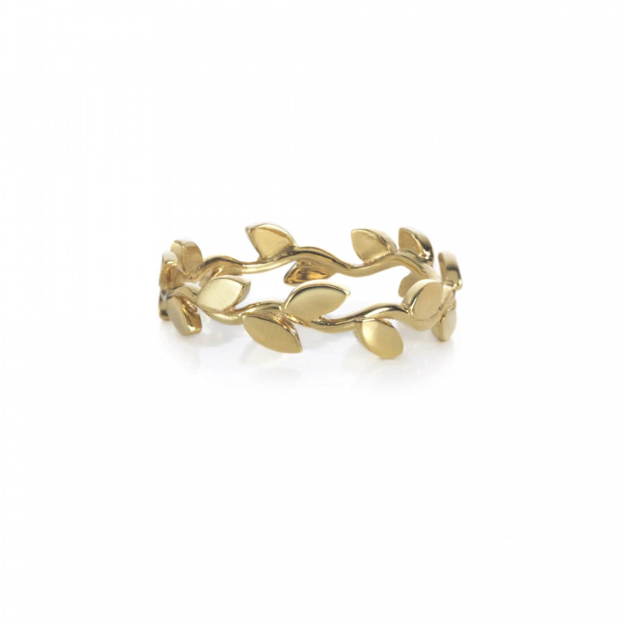 Anello in oro giallo 18 kt con sei foglie in oro a lastra.