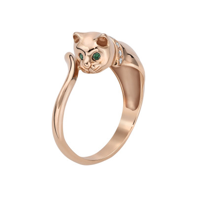 Anello Marco Gerbella a forma di Gatto con occhi di diamanti blu pavone e collare di diamanti bianchi della collezione Piccole Gioie