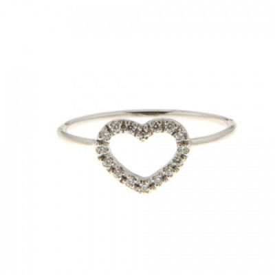 Anello in oro bianco 1.75 gr con cuore a filo con diamanti 0.20 ct.