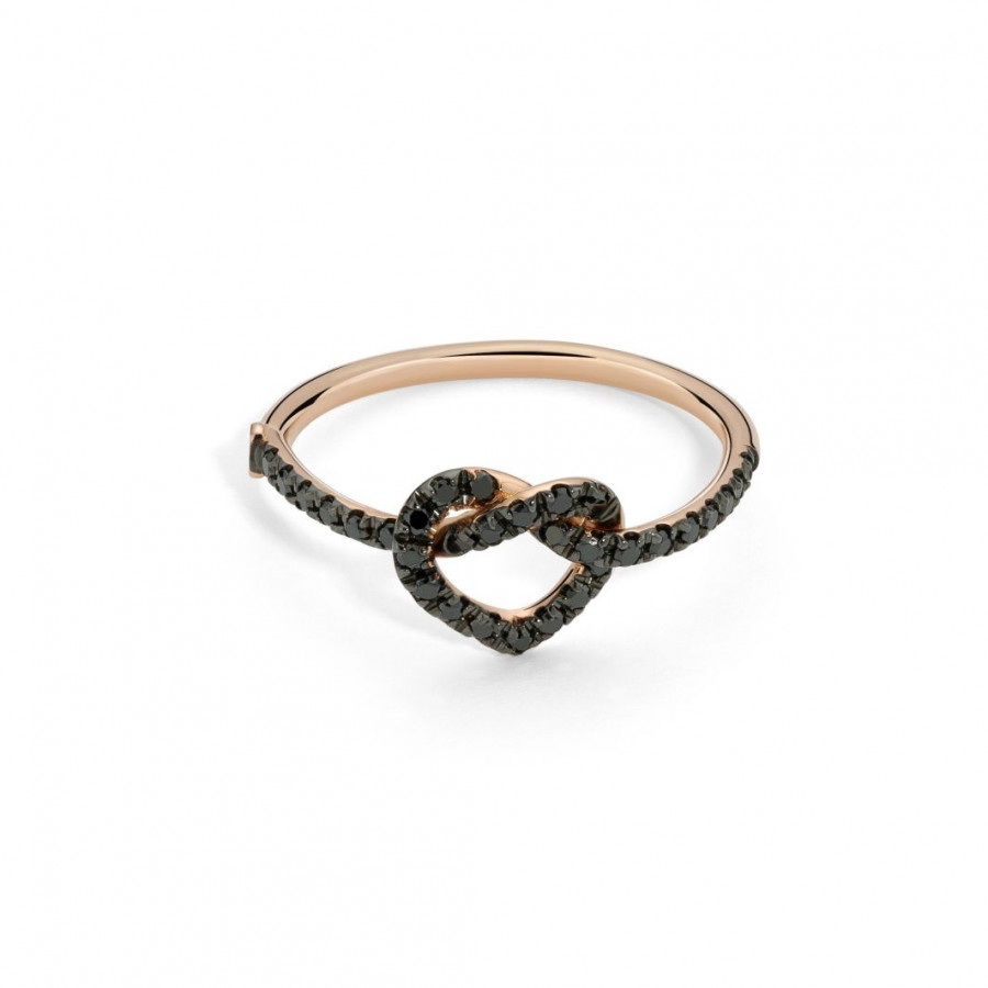 Anello Marco Gerbella con Cuore a nodo a filo in oro rosa con diamanti neri della collezione Piccole Gioie