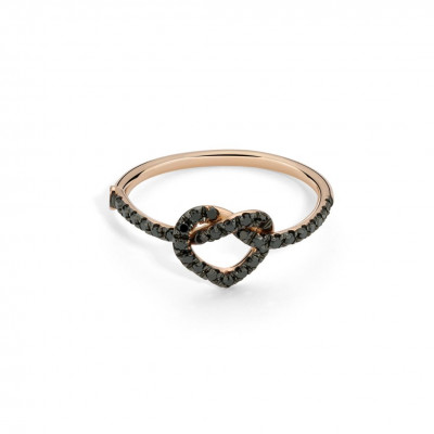 Anello in oro rosa 18k con Cuore a nodo e diamanti neri 0,23 ct.