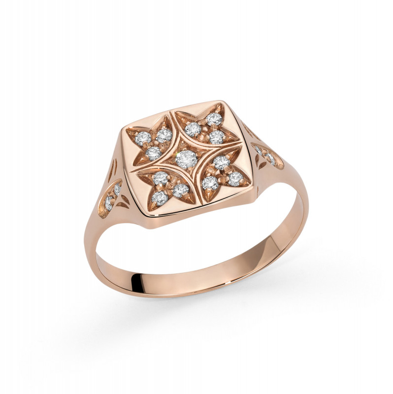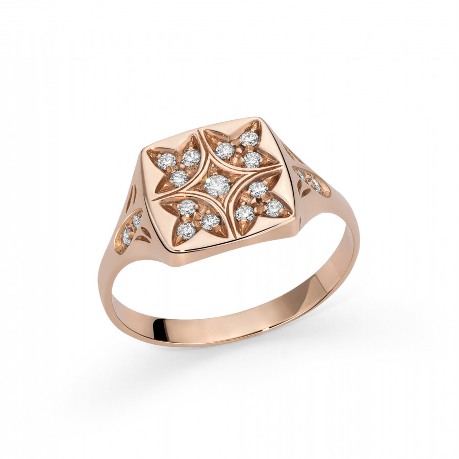 Anello Marco Gerbella Sigillo quadrato inciso in oro rosa con diamanti della collezione Piccole Gioie