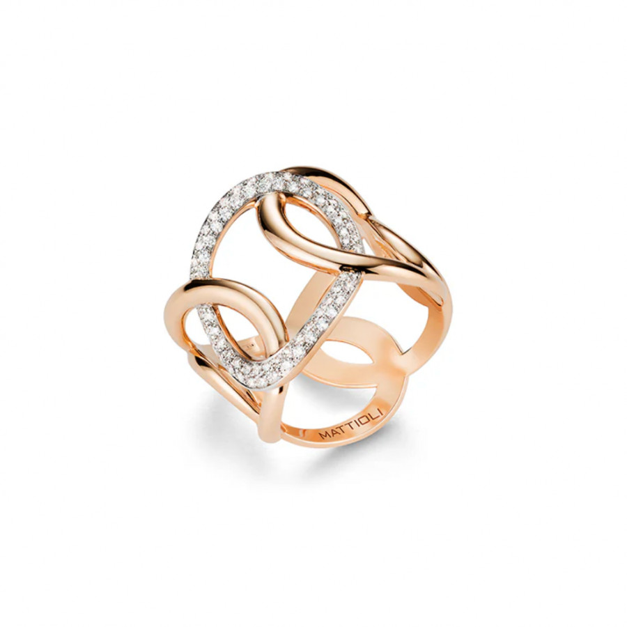 Anello Mattioli in oro rosa e diamanti bianchi della collezione Hiroko.
