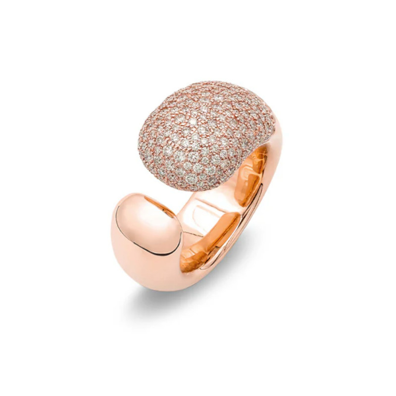 Anello Mattioli in oro rosa e diamanti brown/bianchi della collezione Hiroko.