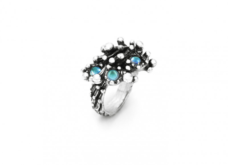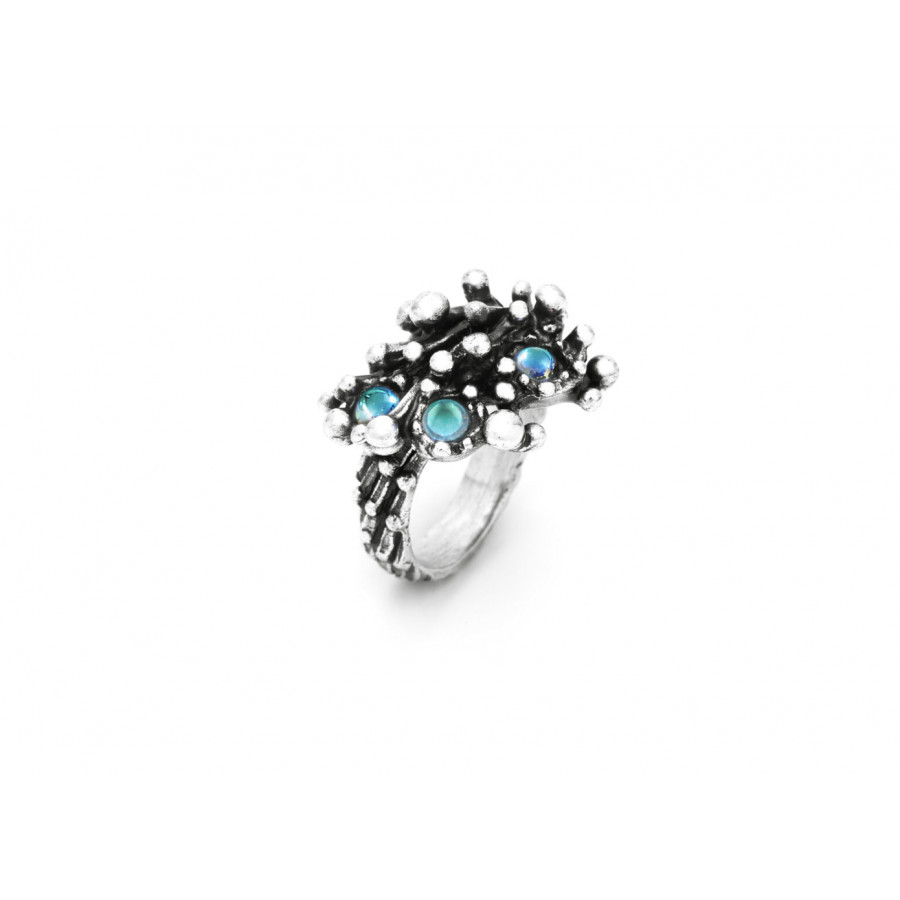 L'incontro dell'argento brunito con i quarzi mystic ad effetto arcobaleno rende l'Anello Fireworks una vera e propria esplosione di luce e colore. Realizzato in azienda con elementi modellati completamente a mano.