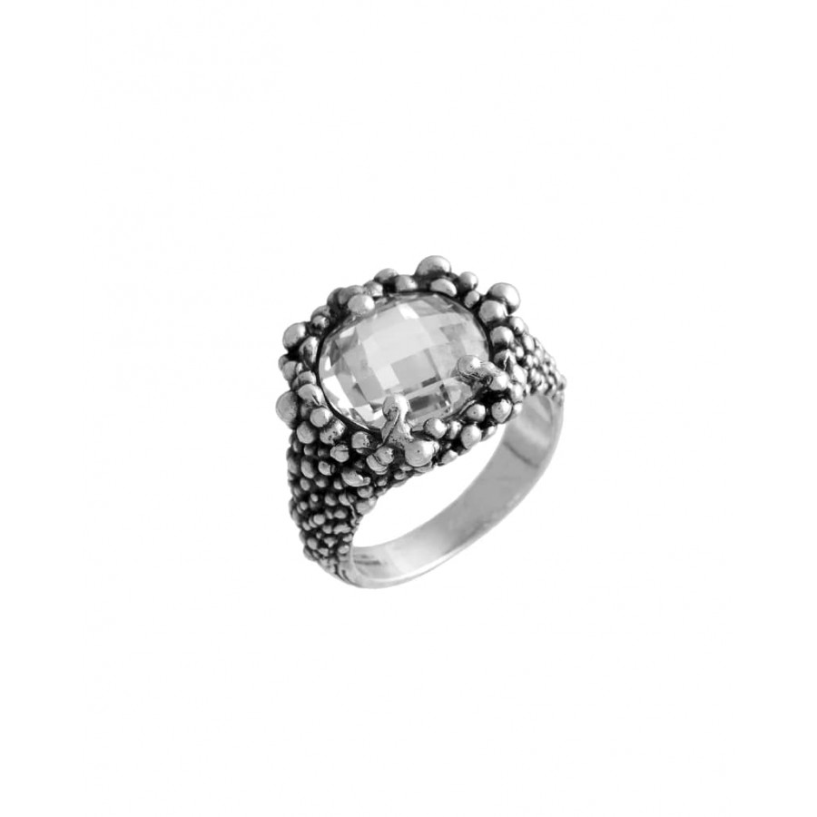 I riflessi dell'argento modellato tramite la fusione a cera persa, abbracciano lo scintillio della pietra: un grande zircone trasparente che riflette la luce più pura. Un anello versatile, dall'eleganza leggera e contemporanea.
