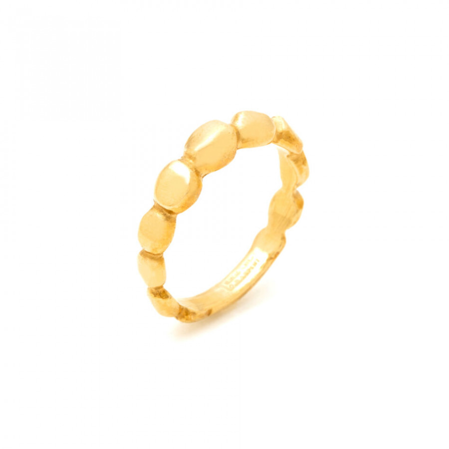 Questo anello, delicatamente elegante, è realizzato in argento dorato fuso a cera persa. Un gioiello contemporaneo, dal design organico, che esprime il desiderio del brand di una ricerca sempre nuova di volumi e luminosità.