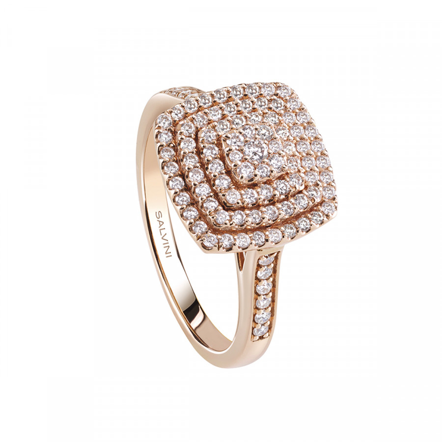 Anello in oro rosa 18kt con diamanti, della collezione Bagliori di Salvini.
