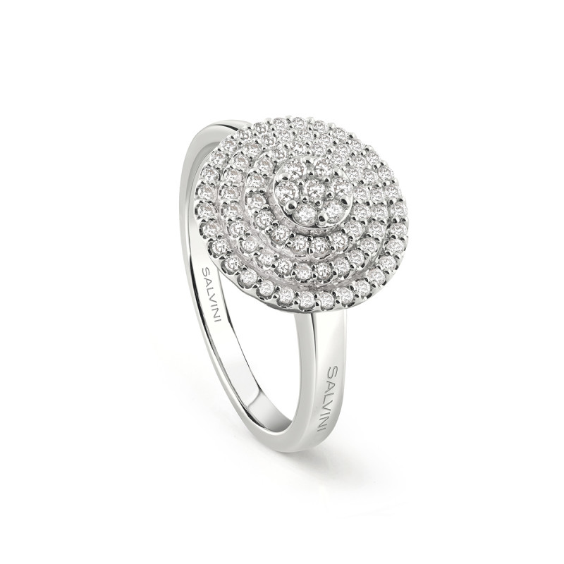 Anello in oro bianco 18kt con diamanti, della collezione Bagliori di Salvini.