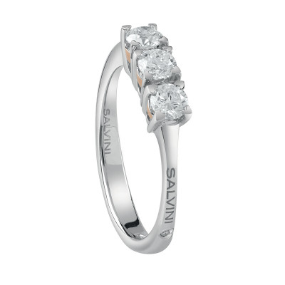 Anello solitario in oro bianco e oro rosa con 3 diamanti 0.58 ct. F SI, della collezione Battito di Salvini.