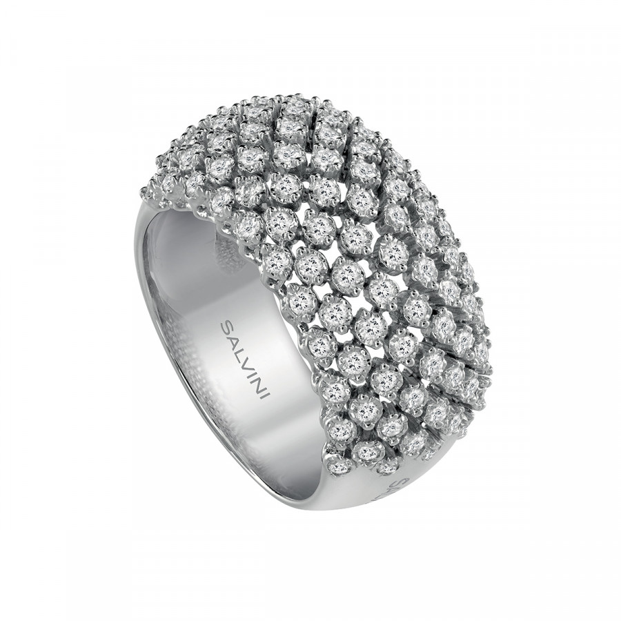 Anello in oro bianco con diamanti, della collezione Cachemire di Salvini.