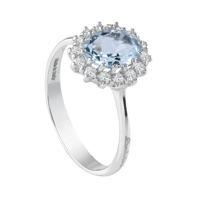 Anello in oro bianco con diamante e acquamarina, della collezione Capri di Salvini.