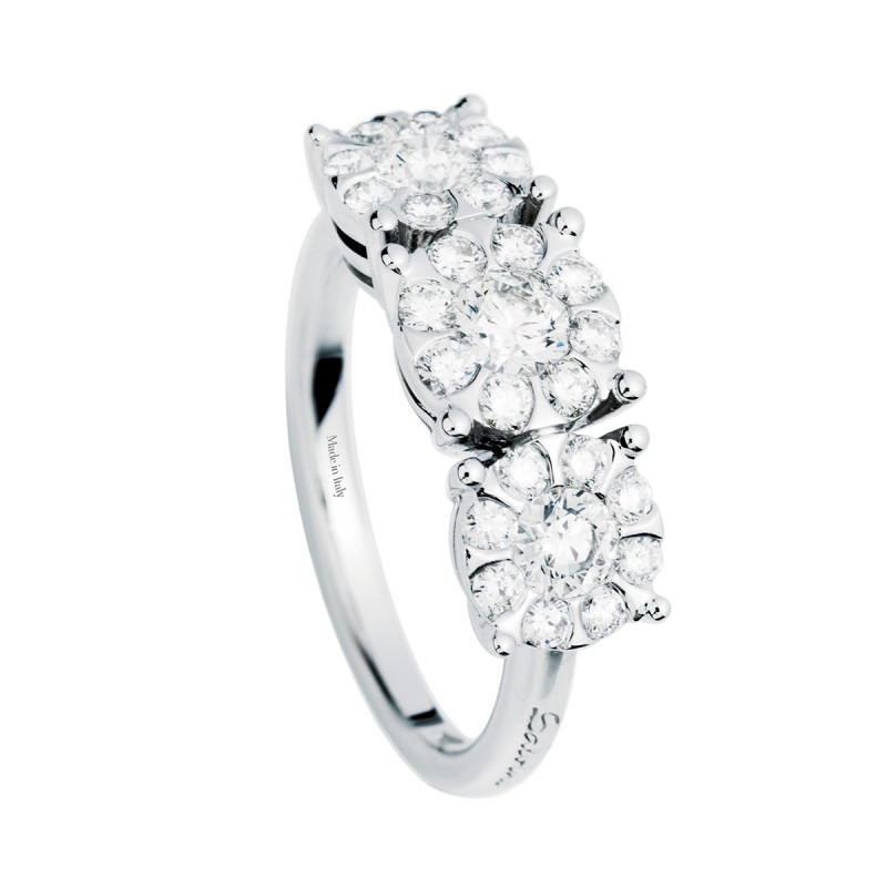 Anello Trilogy in oro bianco con 3 diamanti, della collezione Daphne di Salvini.