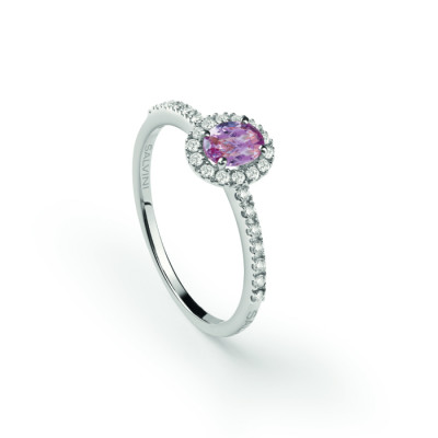 Anello Salvini in Oro Bianco con Diamanti e zaffiro rosa della collezione Dora