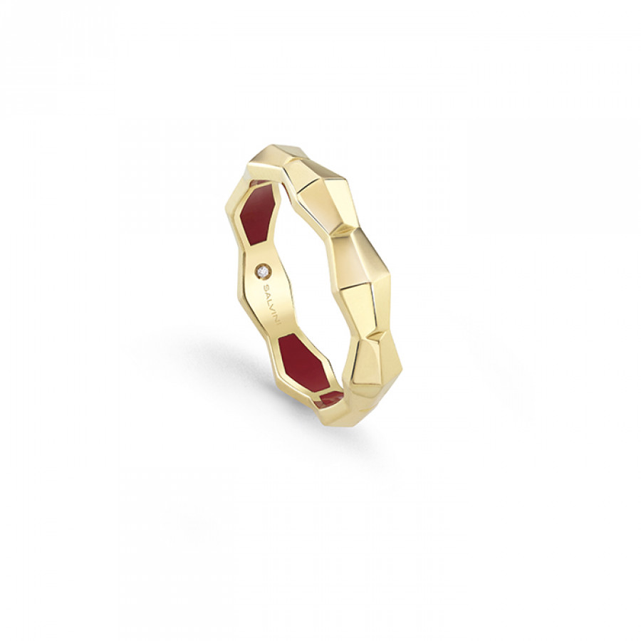 Anello Salvini della collezione Eva in oro giallo con diamanti 0.003 ct. Gh e hyceramic rosso taglio rotondo