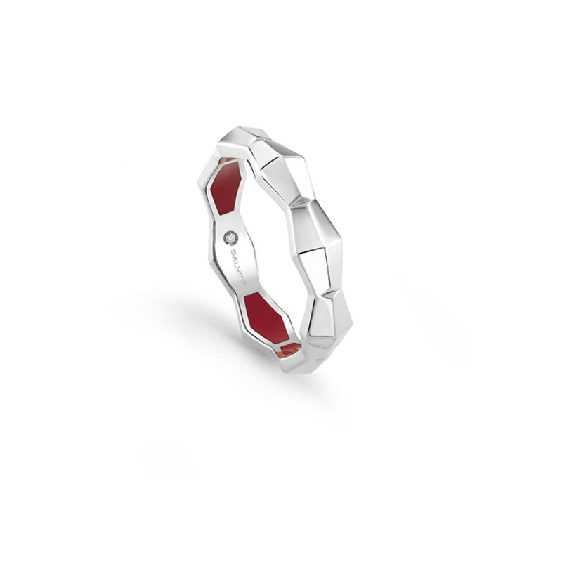 Anello Salvini gioielli in oro bianco con diamanti e hyceramic rosso della collezione Eva.