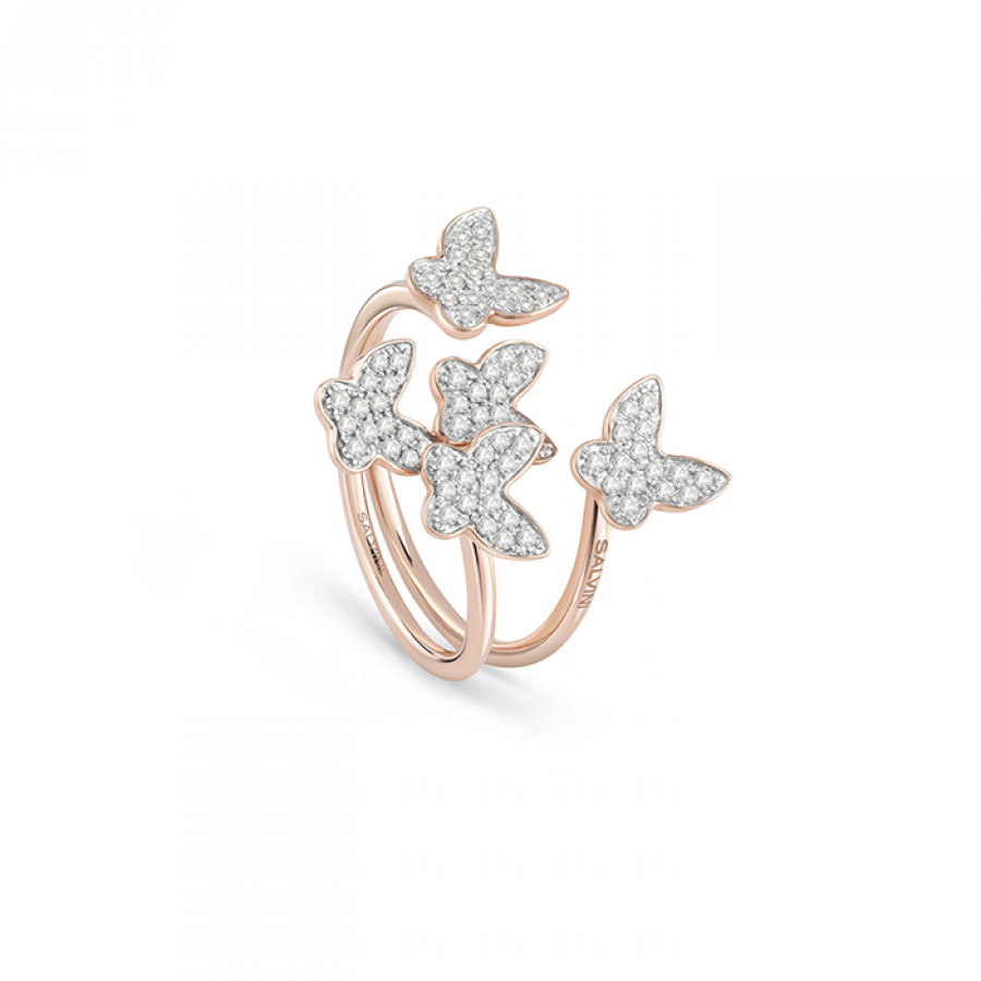 Anello in oro rosa 18kt e diamanti 0.31 ct Gh con farfalle