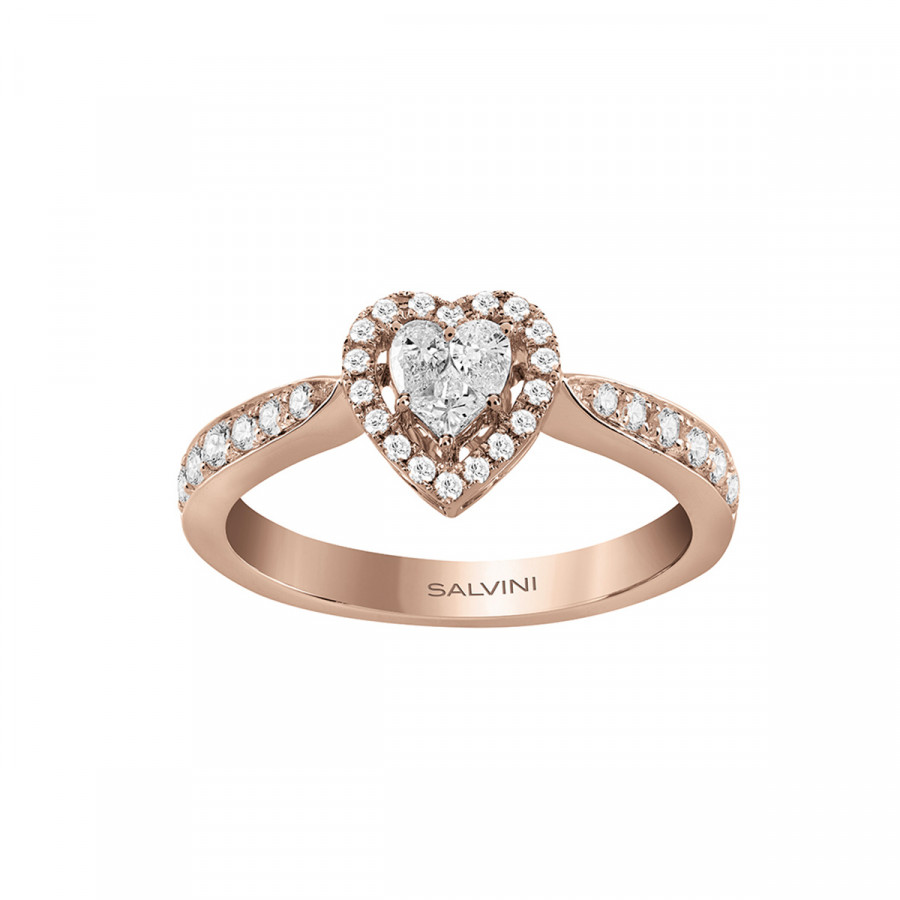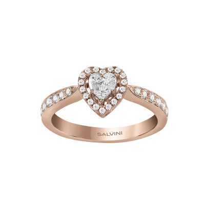 Anello solitario cuore in oro rosa con diamanti, della collezione Magia di Salvini.