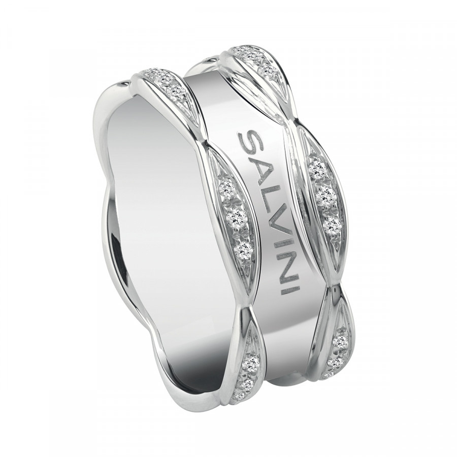 Anello in oro bianco con diamanti, della collezione Sunny di Salvini.