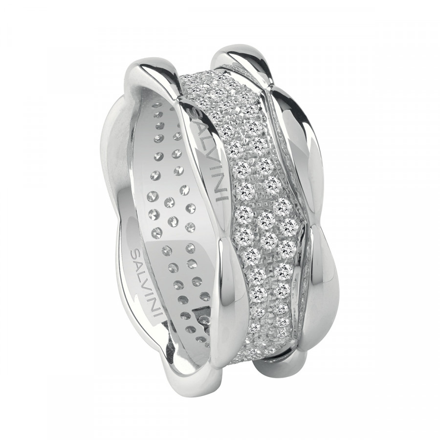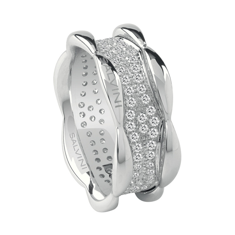 Anello in oro bianco con diamanti, della collezione Sunny di Salvini.