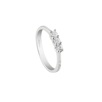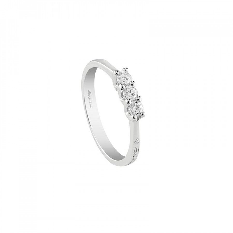 Anello trilogy in oro bianco e 3 diamanti, della collezione Virginia di Salvini.