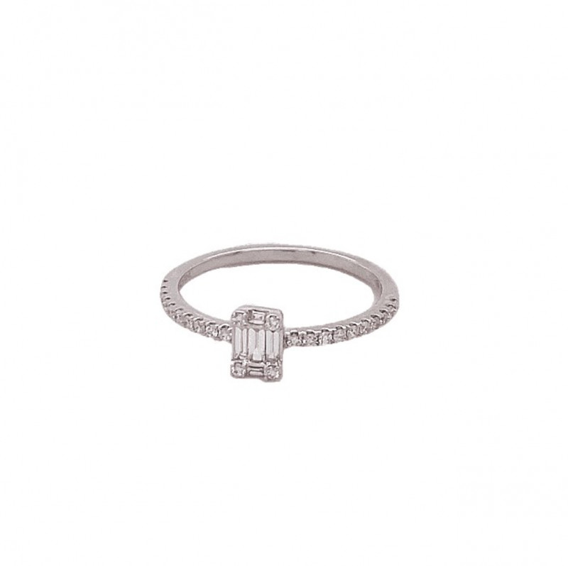 Anello in oro bianco con diamanti 0.2 ct. Gh e diamante centrale 0.08 ct. Gh