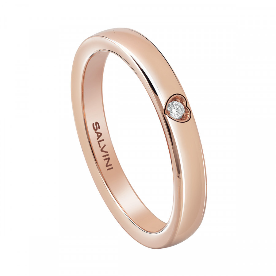 Fede nuziale in oro rosa con diamante, della collezione Battito di Salvini.