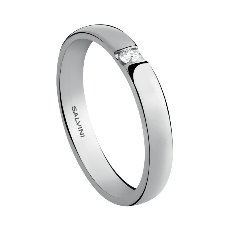 Fede nuziale Salvini in oro bianco con diamante, della collezione Forever