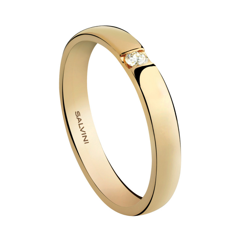 Fede nuziale Salvini in oro giallo con diamante, della collezione Forever